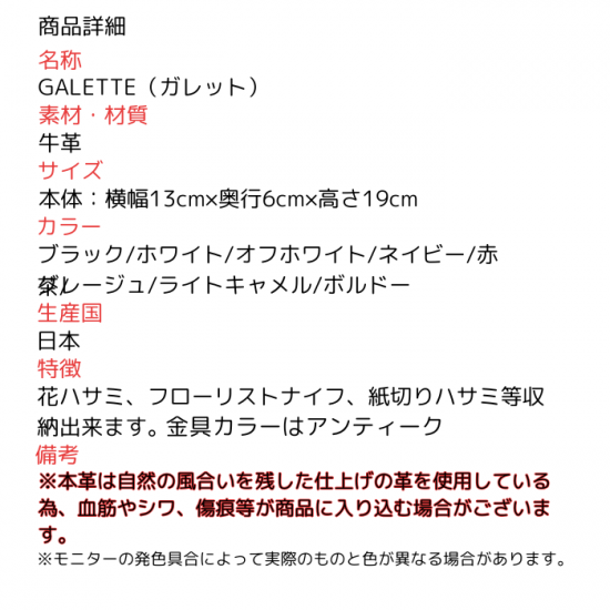 【名入れ】 ハンドメイド フローリストケース GALETTE 【本革】 カラー8色