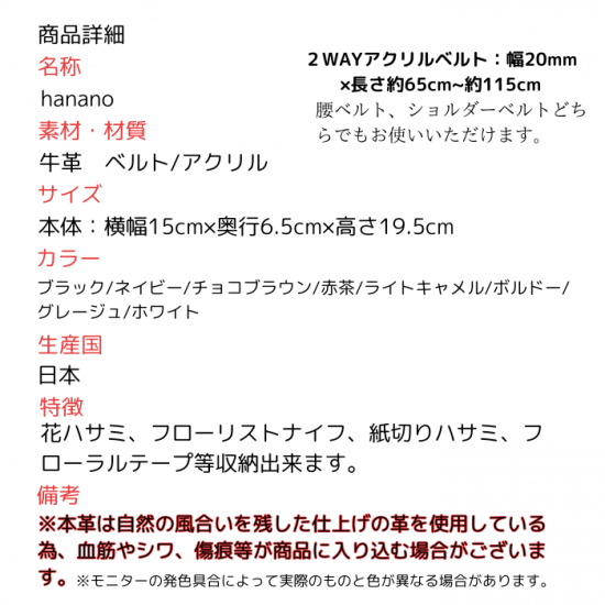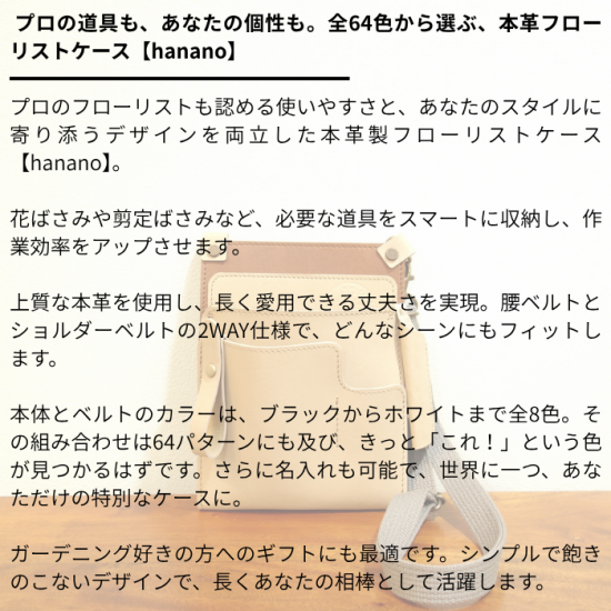 期間限定20%OFF 【名入れ】 ハンドメイド フローリストケース hanano 【本革】カラー8色 64パターン