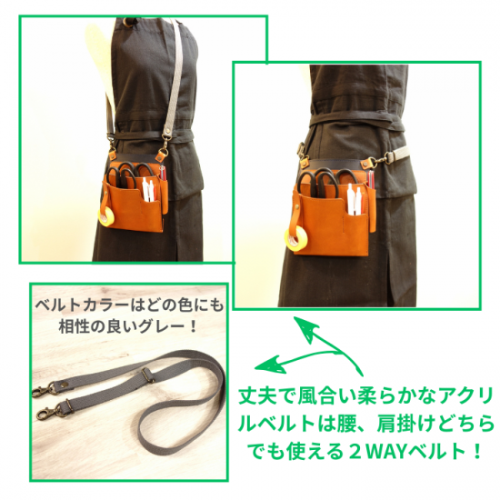 上質な本革を使用し、長く愛用できる丈夫さを実現。腰ベルトとショルダーベルトの2WAY仕様で、どんなシーンにもフィットします。